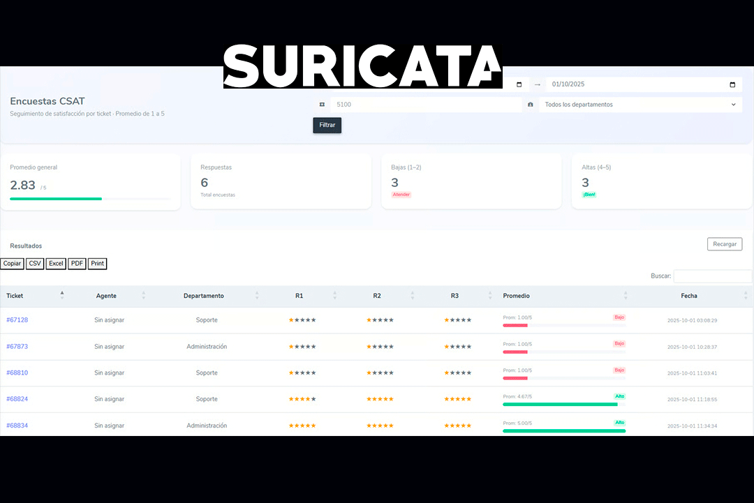En ese punto, la información se puede filtrar por rango de fechas, número de ticket o departamento y así obtener un análisis más preciso y segmentado de los resultados.