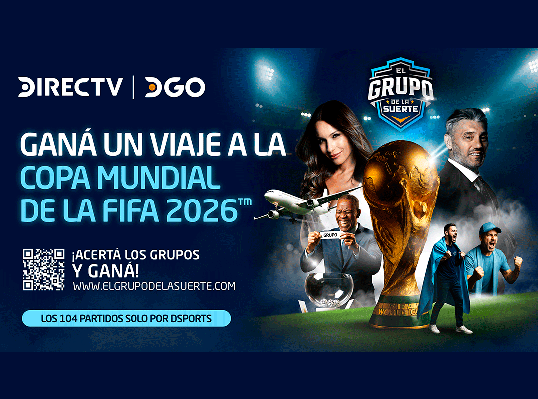 DirecTV lanza “El grupo de la suerte”, un concurso para los fanáticos del fútbol que premiará al ganador y un acompañante con pasajes, alojamiento y entradas para disfrutar de la próxima Copa Mundial FIFA 2026 que se disputará en los Estados Unidos, México y Canadá.
