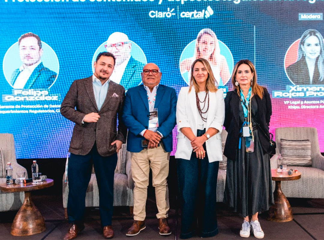 El panel reunió a Felipe González San Martín, director de Regulación y Asuntos Públicos de Claro Chile; Herbert Galiano, representante regional de Randy Labs y especialista en inteligencia aplicada al combate de la piratería; Karina González Duarte, gerenta legal de DIRECTV Latin America; y Ximena Rojas Prosser, abogada, académica y ejecutiva del sector fintech, quien ofició como moderadora.