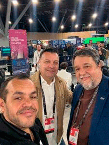 Fabio Angelini, Director Comercial del Grupo Pinancle, con Billy Neves, CEO de Broadmedia, y Fernando Moura de SET en IBC Amsterdam.