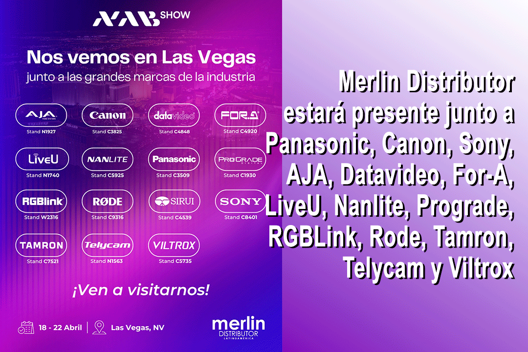 Del 18 al 22 de abril en Las Vegas, en los Estados Unidos llegara un nuevo NAB Show con muchas novedades tecnológicas para el mercado audiovisual, que marcará un punto de inflexión donde las tecnologías que estaban en desarrollo como promesas, hoy día se consolidan como el estándar operativo de la industria, y que como es característico contará con la presencia de visitantes de la industria profesional de América Latina, y donde serán recibidos allí por todo el equipo de Merlin Distributor que estará trabajando en cada uno de los stands de sus marcas representadas, y en donde se los podrá encontrar en los stands de AJA Video Systems, Canon, Datavideo, FOR-A, LiveU, NANLite, Panasonic, ProGrade, RGBLink, RØDE, Sony, Tamron, Telycam y Viltrox, y donde está planificado que durante el NAB Show 2026 también Merlin Distributor firmará acuerdos con nuevas marcas que se sumarán a su extenso portfolio de representaciones para la región.