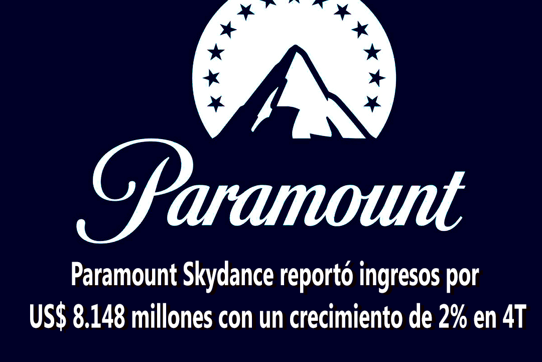 Paramount Skydance reportó que sus ingresos en el cuarto trimestre 2025 fueron de US$ 8.148 millones, lo que refleja un incremento interanual de 2%.