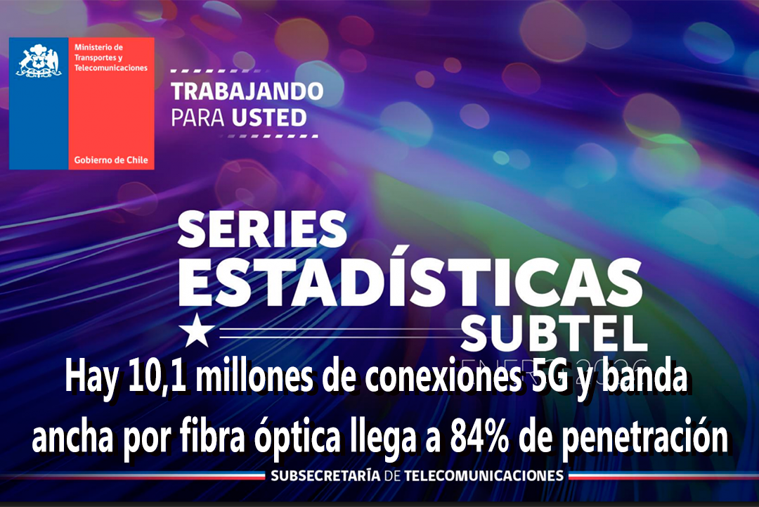 El Ministerio de Transportes y Telecomunicaciones, a través de la Subsecretaría de Telecomunicaciones, entregó nuevas estadísticas de conectividad digital en Chile, correspondientes al mes de enero de 2026 (en comparación con enero de 2025).