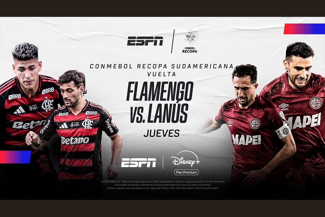 Este jueves 26 de febrero, desde las 21:15 ARG, Flamengo y Lanús disputarán el partido de vuelta de la CONMEBOL Recopa Sudamericana, el certamen que enfrenta a los últimos ganadores de la CONMEBOL Sudamericana y Libertadores. Tras el triunfo del equipo argentino por 1-0 en la ida, la serie se definirá en el mítico Estadio Maracaná, en un encuentro que promete grandes emociones. El partido se podrá disfrutar en VIVO por ESPN y Disney+ Plan Premium.