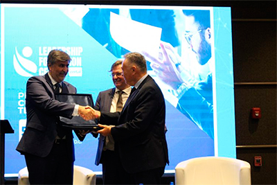 Para comenzar un día de profundo debate sobre el flagelo de la piratería para el mundo audiovisual y de las telecomunicaciones, Scotellaro y Duarte, entregaron un reconocimiento por su lucha contra la piratería y su aporte al Centro de Estudios, a Sergio Piris, gerente de Asuntos Penales, delitos tecnológicos y Antipiratería de Telecom Argentina.