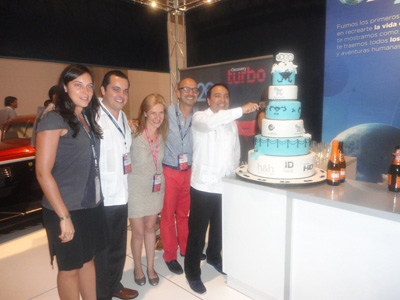| El staff de Fox International Channels LA | Alan Navarrete y es el staff de Discovery durante el corte de pastel por los 20 años en Latinoamérica |