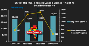 Si se observa un Engagement digital donde suben las menciones y visitas principalmente en las plataformas simulcast de ESPN, es decir durante el show en vivo tanto la radio online como ESPN Play incrementan su consumo, mientras que el sitio de espn.com se acciona en el post show.